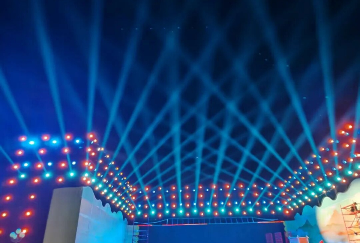 而这场文化盛宴的舞台光彩,全由新疆大唐盛业联合欧玛灯光打造——近500台欧玛旗舰设备强势助阵,其中防水光束灯以精准锐利的光效划破边疆夜色,切割灯灵活勾勒出诗与舞台的立体轮廓,LED染色灯则将“戈壁明珠”的璀璨与军垦情怀的厚重铺满全场,让千年诗韵与兵团精神在光影流转中实现深度交融。