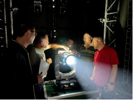 随后,在华总的带领下,专家调研组一行移步展厅,进行产品观摩与实地测试考察,观看欧玛特色灯具定制展示秀,专家调研组一行人参观了多个产品种类,对每一款产品的特点、性能、优势以及市场定位等方面进行了深入了解,通过细致的分析,为欧玛灯光在产品开发和市场推广方面提供宝贵建议,共同推动舞台影视灯光行业的创新发展。