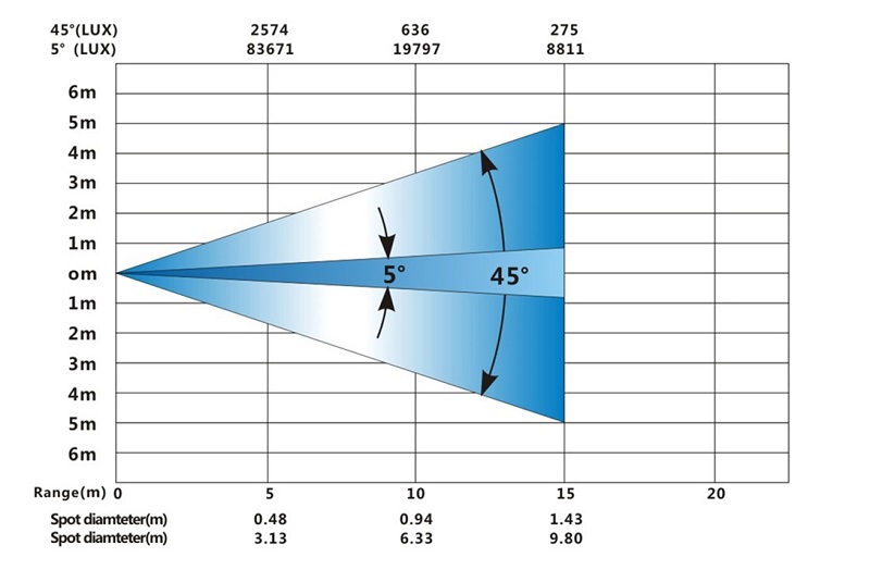 Zoom: electronic linear zoom 5°-45°, distance from 2m to infinity;