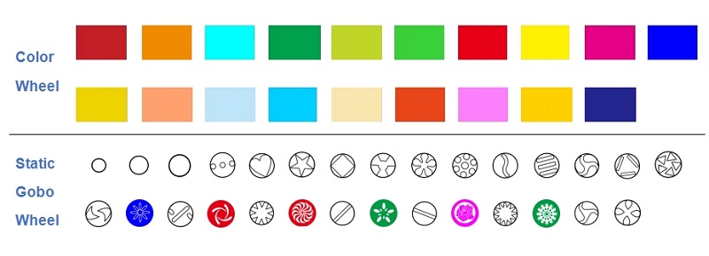 Color: One 19-color wheel + blank, with bidirectional rotation rainbow effect;