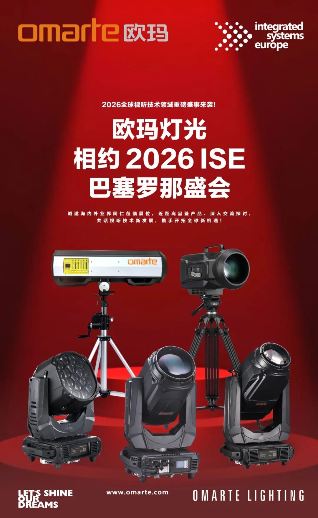 2026全球视听技术领域重磅盛事来袭!欧洲视听技术与系统集成展览会(Integrated Systems Europe,简称ISE),将于2月3日-6日在西班牙巴塞罗那格兰大道会展中心盛大启幕。欧玛灯光携硬核实力出海,精彩亮相此次国际舞台!